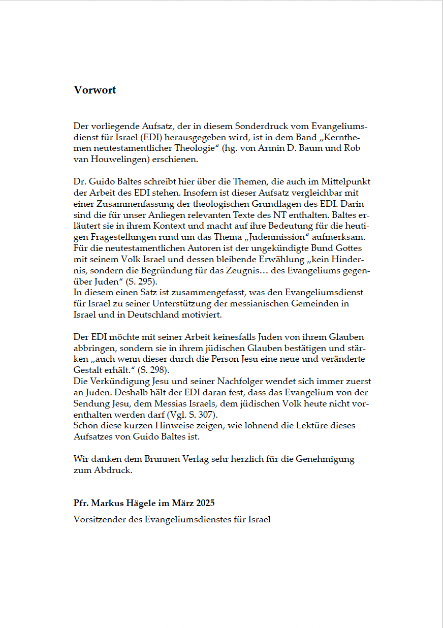 In dieser Broschüre ist präzise zusammengefasst, was den Evangeliumsdienst zu seiner Unterstützung der messianischen Gemeinden in Israel und in Deutschland motiviert.
